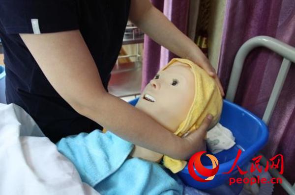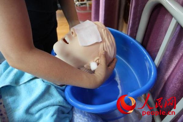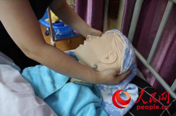 帮助老年人调整体位并保护其眼耳。(“达医晓护”供图)